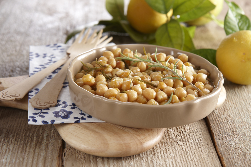 Ανακατεύετε και σκεπάζετε το ταψί με αλουμινόχαρτο (αν χρησιμοποιήσετε γάστρα, τη σκεπάζετε με το καπάκι της). Ψήνετε τα ρεβίθια για 30 – 40 λεπτά, μέχρι να μαλακώσουν και να μελώσουν. Τα σερβίρετε ζεστά ή κρύα.