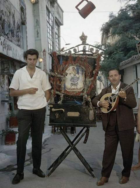 Ο Μίκης Θεοδωράκης και ο Γιώργος Ζαμπέτας φωτογραφίζονται το 1961 στην Πλάκα, (πηγή φωτογραφίας «Αθήνα μου»).