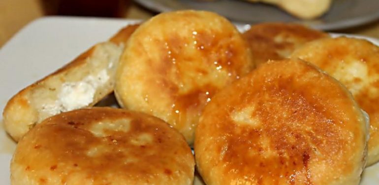 Σε ένα μπολ ρίχνετε την ξινομυζήθρα και τη σπάτε με ένα πιρούνι. Παίρνετε ένα ένα τα μπαλάκια της ζύμης και τα ανοίγετε στην παλάμη σας σε στρογγυλά πιτάκια. Τοποθετείτε στο κέντρο του καθενός από 1 κουτ. γλυκού μυζήθρα και ξεκινάτε να τραβάτε τη ζύμη λίγο λίγο από τριγύρω και να την ανασηκώνετε προς το κέντρο, πάνω από το τυρί. Στο τέλος θα δημιουργήσετε ένα πουγκάκι και το τυρί θα κρυφτεί εντελώς. Επαναλαμβάνετε την ίδια διαδικασία μέχρι να τελειώσουν τα υλικά σας.