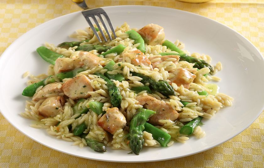 Προσθέτουμε το κοτόπουλο, ανακατεύουμε και συνεχίζουμε το μαγείρεμα για άλλα 10-13 λεπτά, μέχρι να μαλακώσει το κριθαράκι και να απορροφήσει τα υγρά. Προσθέτουμε το ξύσμα και τον χυμό λεμονιού, ανακατεύουμε απαλά και αποσύρουμε από τη φωτιά.