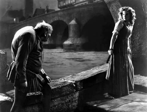 Ο Τσαρλς Λότον στο ρόλο του Κουασιμόδου και η Μορίν Ο’Χάρα στο ρόλο της Εσμεράλδας στην ταινία «Η Παναγία των Παρισίων» (πρωτότυπος τίτλος «The Hunchback of Notre Dame»).