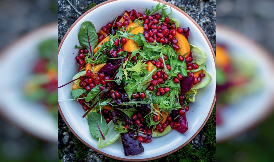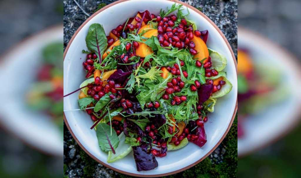 Μια σαλάτα στην οποία η φρεσκάδα των πράσινων φύλλων δένει με τη γλύκα των ψητών λωτών και τα καρύδια προσθέτουν τραγανή υφή και πλούσια γεύση.