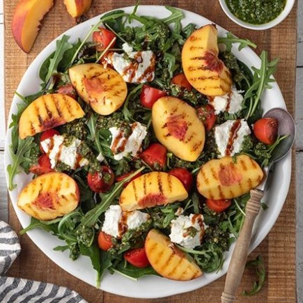 Αποσύρουμε το τηγάνι από τη φωτιά, μεταφέρουμε τα νεκταρίνια στη σαλάτα και σερβίρουμε.